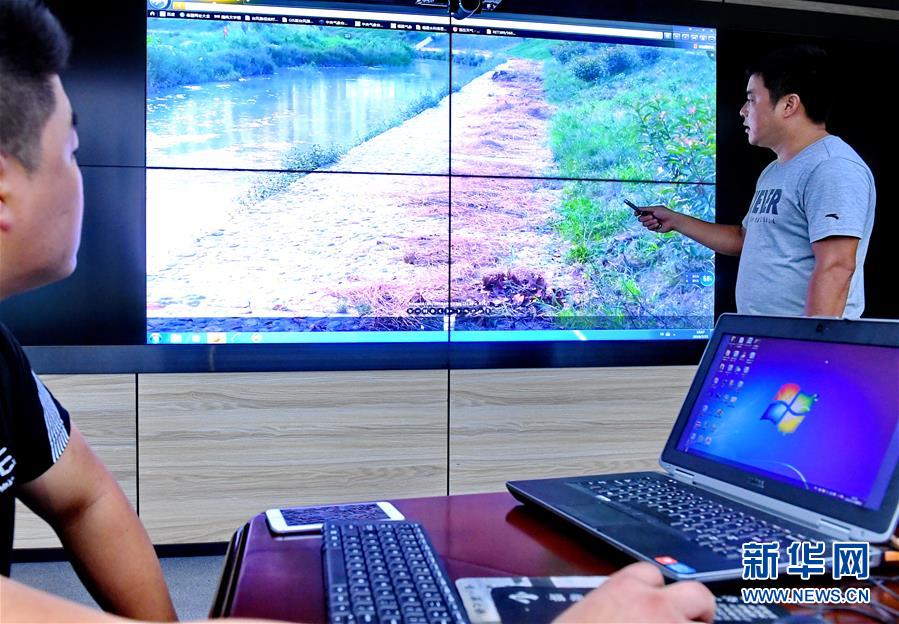 7月25日,福鼎市河道管理中心主任林上霞(右)在介绍河道专管员通过手机移动终端向福鼎河长制信息化综合管理平台发送的龙山溪畔垃圾物图像。今年以来,福建省福鼎市在生态水环境治理方面,加快调整完善了河长制实施方案及河长制领导机构,严格落实县级河长“一月一巡河”,乡级河长“一周一巡河”,专管员“一日一巡河”制度,全面推进水环境综合治理,确保流域生态环境优美。新华社记者 林善传 摄