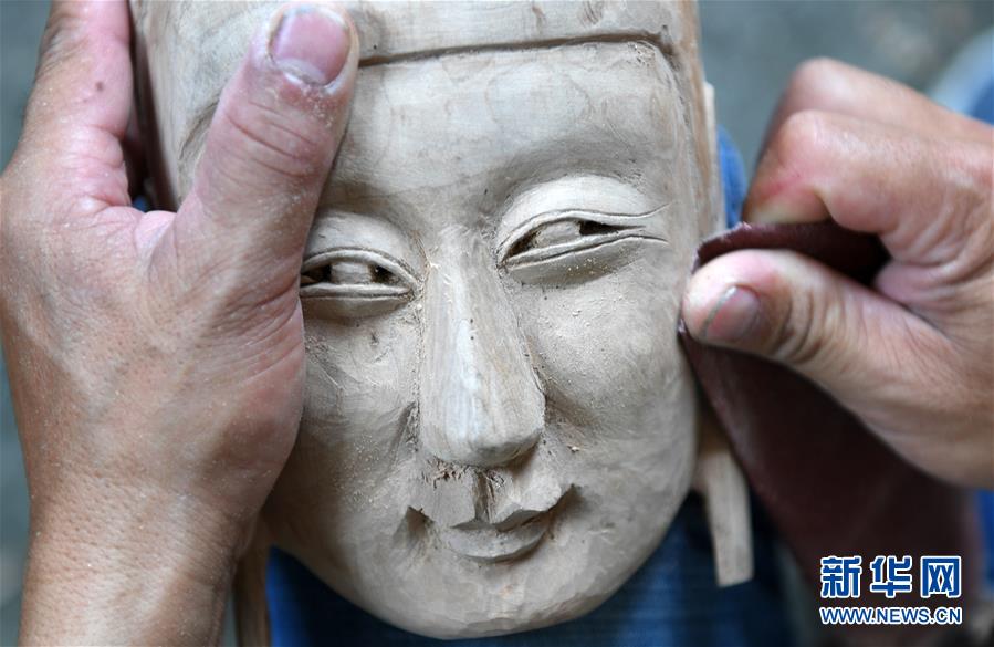 7月25日,方文展在打磨一块毛南族傩面。广西环江毛南族自治县洛阳镇江口村大河屯农民方文展是家族第四代毛南族傩面雕刻传人,也是自治区级非物质文化遗产代表性项目——毛南族木雕技艺的代表性传承人。毛南族傩面需要用优质木料雕琢,分文、武、善、凶4大类36套72种面相,性格神态各有特点。雕刻者要在毛南族民间口头文学的基础上依据个人想象创作,一张傩面需要10多道工序花费近一周时间才能完成。新华社记者 陆波岸 摄