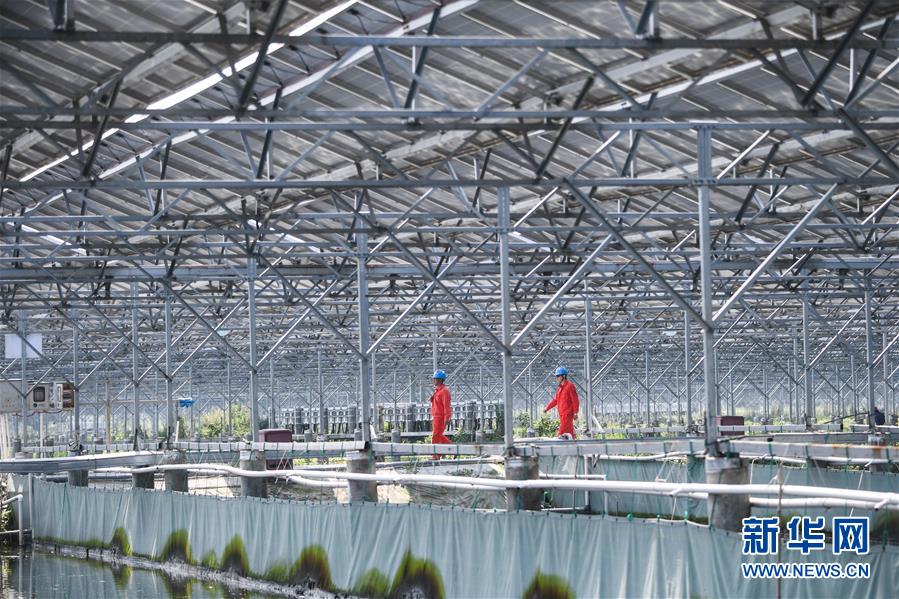 7月25日,工作人员在检查湖州市和孚镇陈塔村的“渔光互补”光伏发电项目,保障夏季高温天气下,光伏设备正常运行。