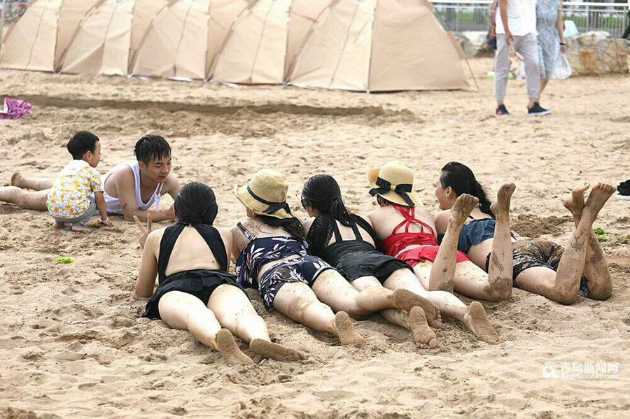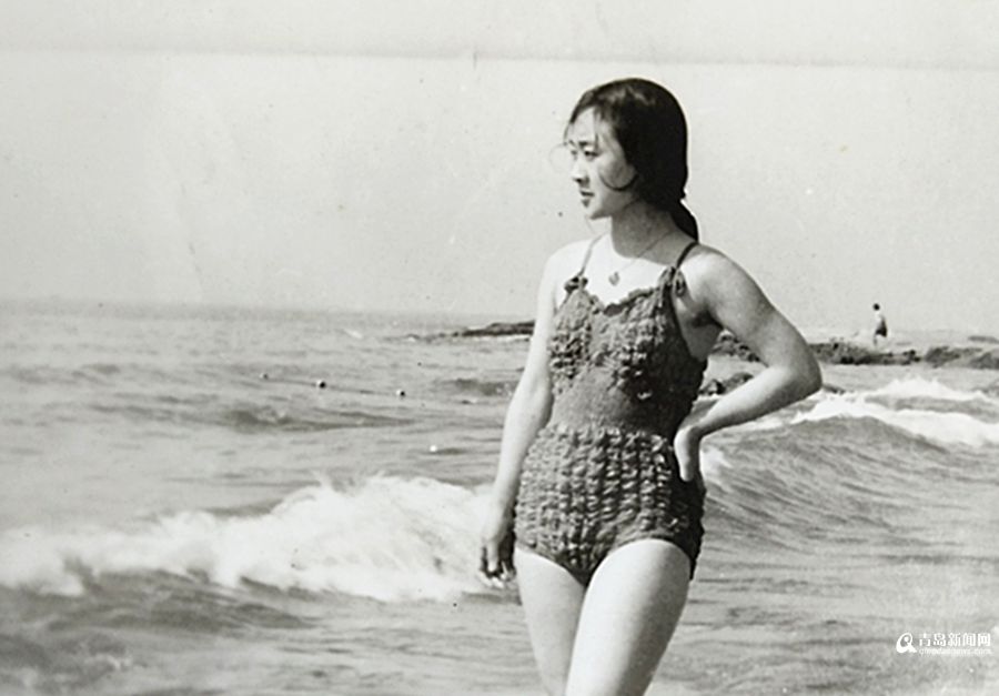 老照片里,青岛女孩新潮的泡泡泳衣。
