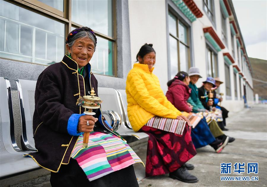 老人们在错那县特困人员集中供养服务中心的院子里休憩(7月25日摄)。新华社记者 刘东君 摄
