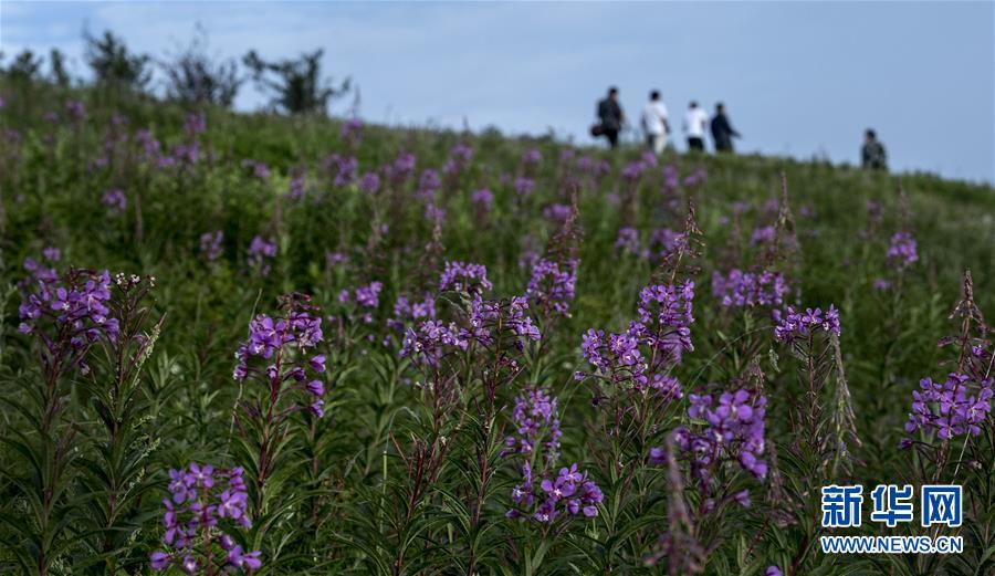 7月27日,游人在正阳草甸游览。 陕西省平利县正阳镇的大巴山脉上,有一处郁郁葱葱的高山草甸。盛夏时节,这里绿草如茵,野花遍地,一片清凉世界,成为夏日游人消暑休闲的好去处。新华社记者 陶明 摄