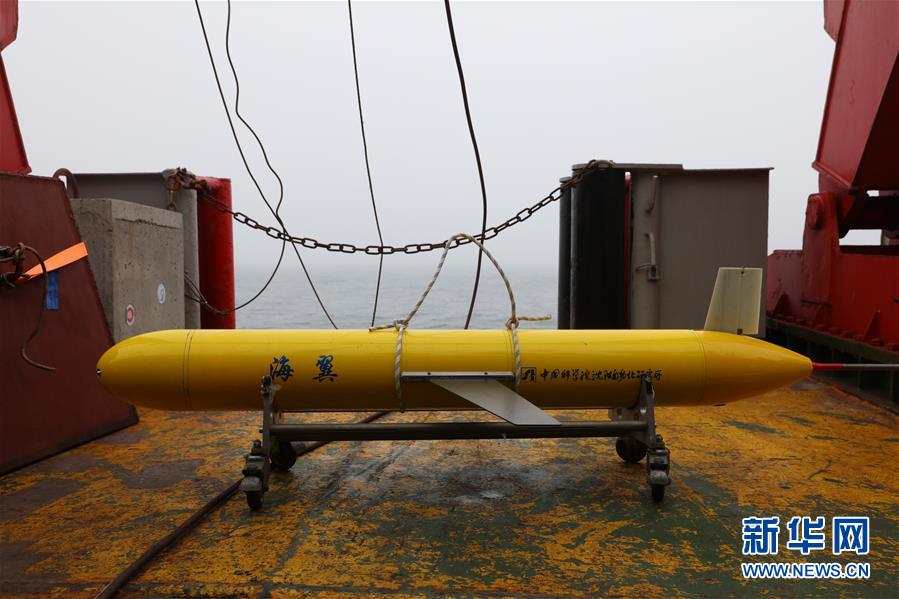 7月28日,我国自主研发的“海翼”号水下滑翔机首次“亮相”北极科考。 新华社记者申铖摄