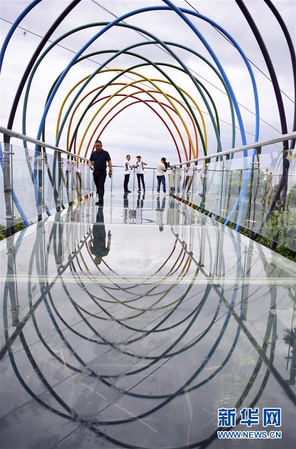 7月29日,在海南三亚亚龙湾热带天堂森林公园,人们在海景玻璃栈道上观光。 新华社发(沙晓峰 摄)