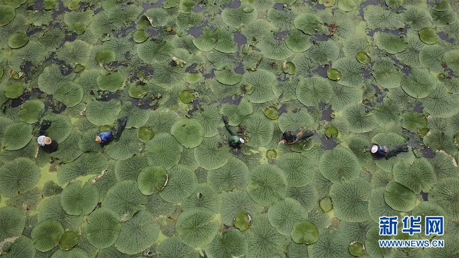 这是7月29日在安徽寿县安丰塘水库北堤拍摄的“稻田画”(无人机拍摄)。