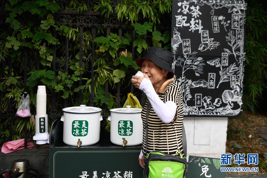 7月29日,一位市民在凉茶摊前品尝凉茶。 新华社记者 黄宗治 摄