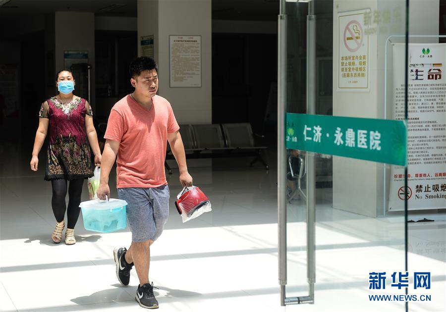 在苏州永鼎医院,郑勇涛(右)和龚雪娟的妈妈杨美英将做好的蒸面给龚雪娟送去(7月21日摄)。为了保证龚雪娟的营养,郑勇涛每天都去菜场买新鲜的食材,学着做龚雪娟爱吃的饭菜。新华社记者季春鹏摄