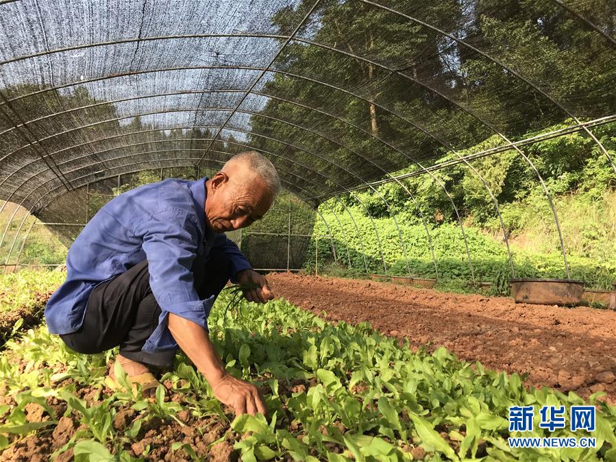 吴恒忠在重庆市潼南区花岩镇龙怀村自家大棚里劳作(6月6日摄)。