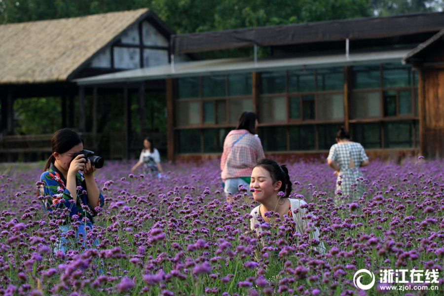 乌镇马鞭草盛放 紫色浪漫来袭