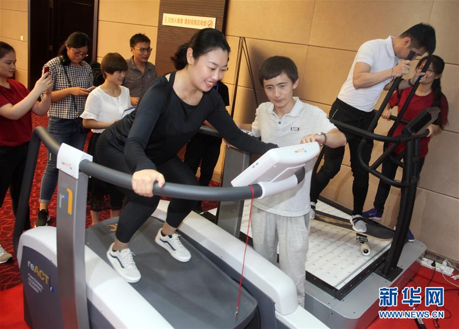 这是在崇礼举行的2017科技冬奥论坛暨体育科技产品展示会上,参观者体验产品(2017年7月28日摄)。 新华社发