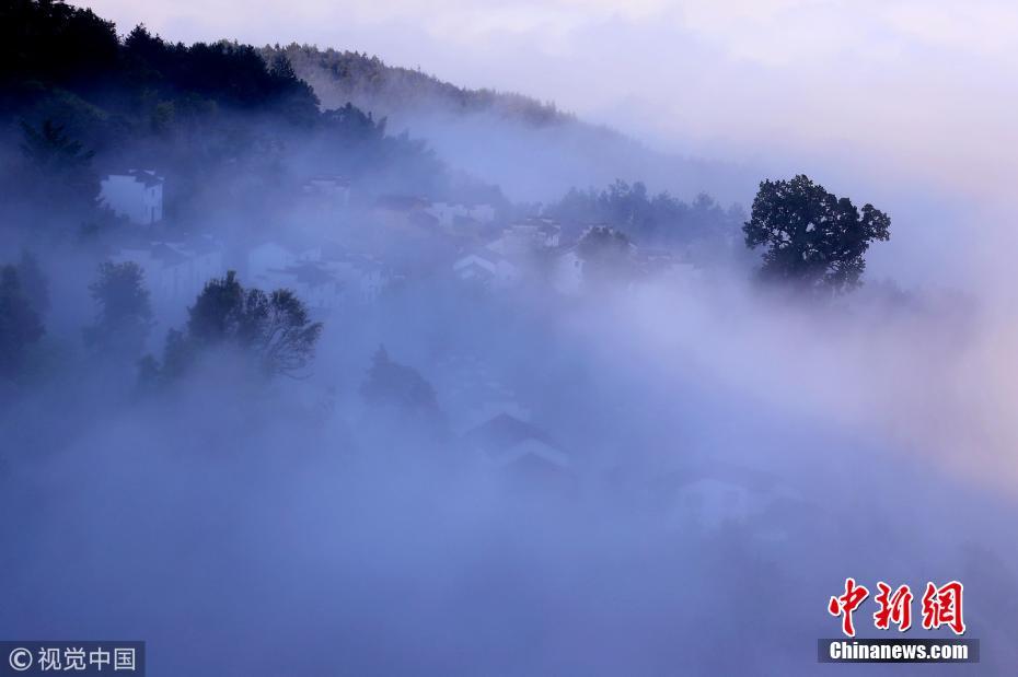7月31日早晨,安徽黄山市休宁县金龙山古村落出现了云海景观。当日,安徽黄山雨后放晴,登高远眺,依山而建的休宁县金龙山古村落,在飘渺弥漫广阔无边的云海中若隐若现,宛如仙境,美不胜收。施广德 摄 图片来源:视觉中国