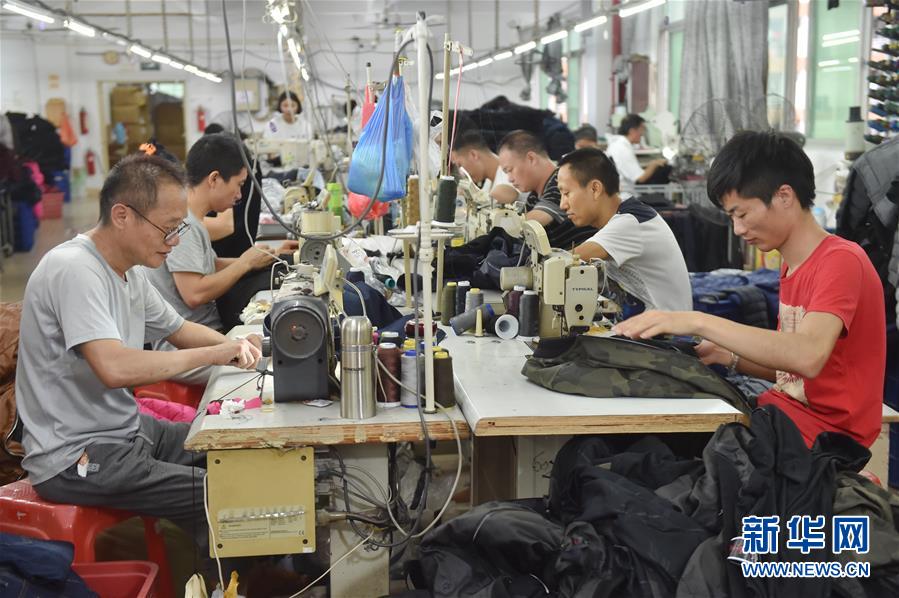 7月31日,在福建省石狮市一家服装厂,工人在加工服装。新华社记者 宋为伟 摄