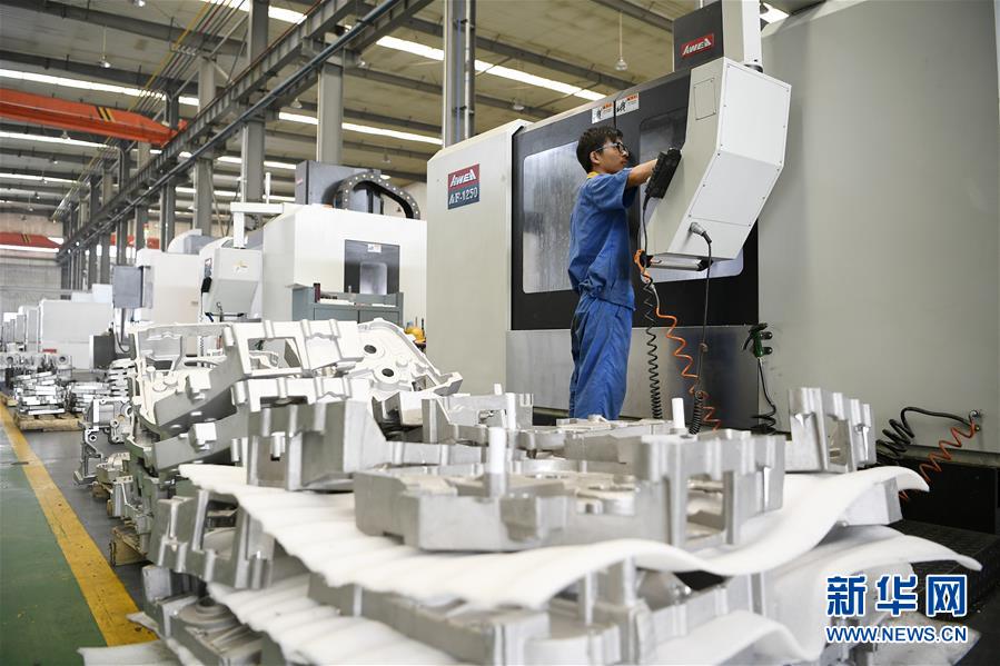 位于石嘴山市的宁夏维尔铸造有限公司,工人在加工铸件(7月31日摄)。 新华社记者 王鹏 摄
