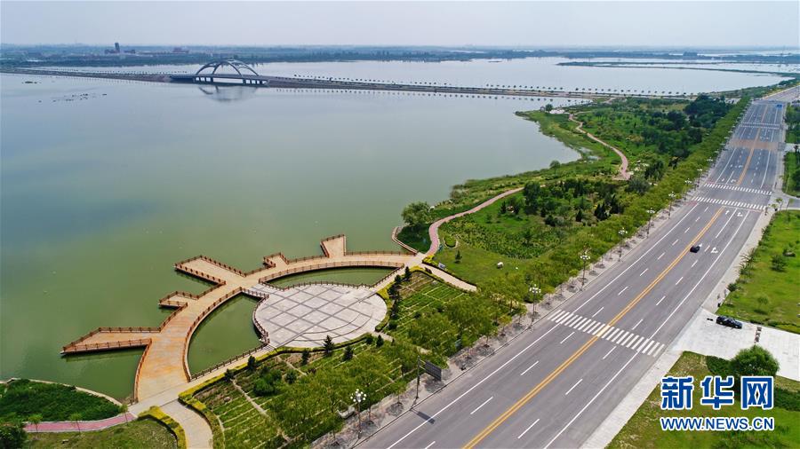 这是宁夏石嘴山市星海湖(7月31日无人机拍摄)。 新华社记者 王鹏 摄