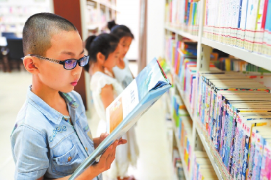 暑假来临,孩子们在洛阳市图书馆内畅游知识的海洋。