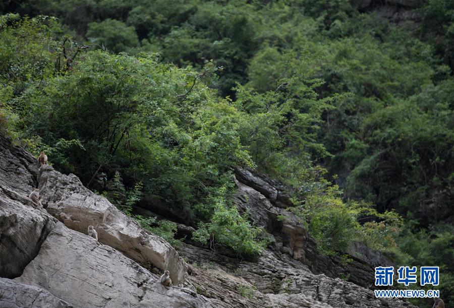小三峡玩耍的猕猴(7月30日摄)。 长江支流大宁河小三峡绝壁高耸,环境优美,常有猕猴活动其间。据介绍,随着生态环境日趋优化,猴群迁徙活动范围扩大,这里的猕猴数量已超过3000只。 新华社记者 金立旺摄