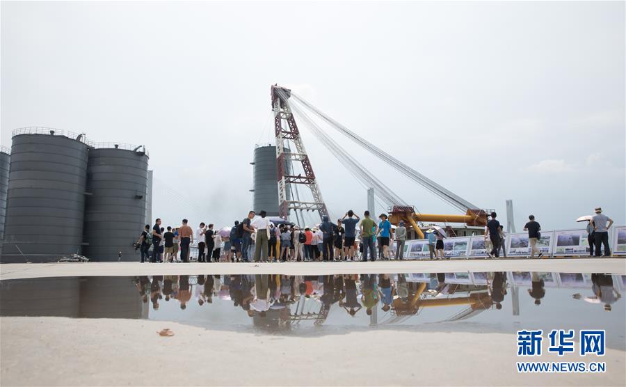8月1日,在岳阳市城陵矶新港区天欣码头,一艘运输船在吊走一个水泥储罐。随着最后几个储罐被清除,该码头彻底被关停。 新华社记者 金立旺 摄