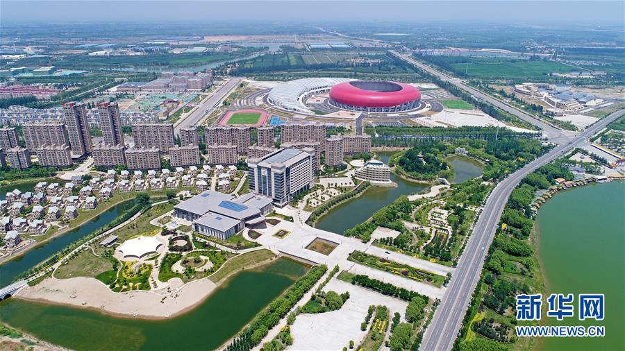 滨河水系环绕吴忠市青铜峡市(6月26日无人机拍摄)。 新华社记者 王鹏 摄