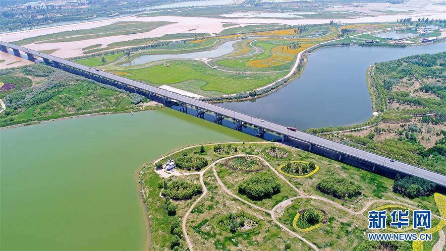 这是吴忠市黄河湿地公园(6月26日无人机拍摄)。 新华社记者 王鹏 摄