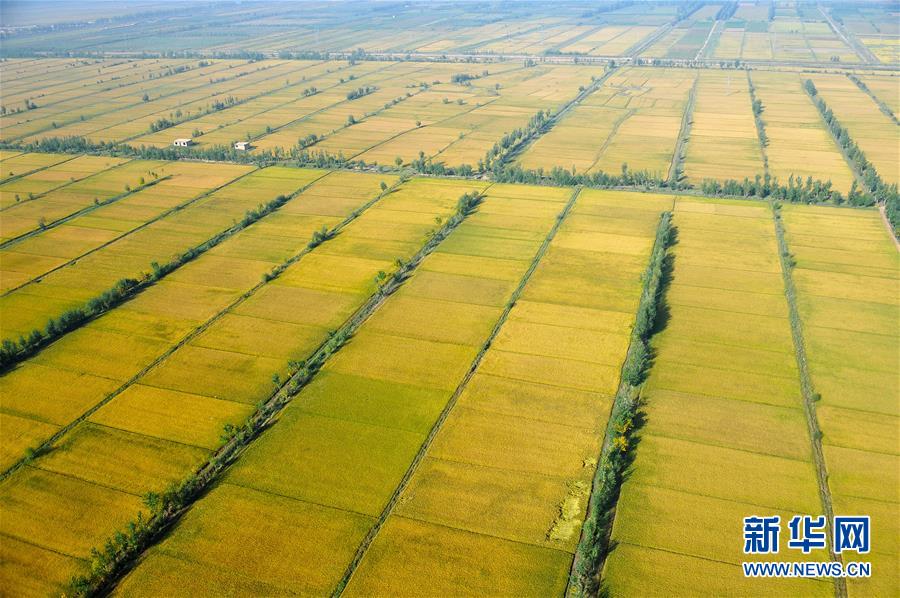 这是吴忠市境内黄河水灌溉的优质水稻田(2008年9月17日摄)。 新华社记者 王鹏 摄