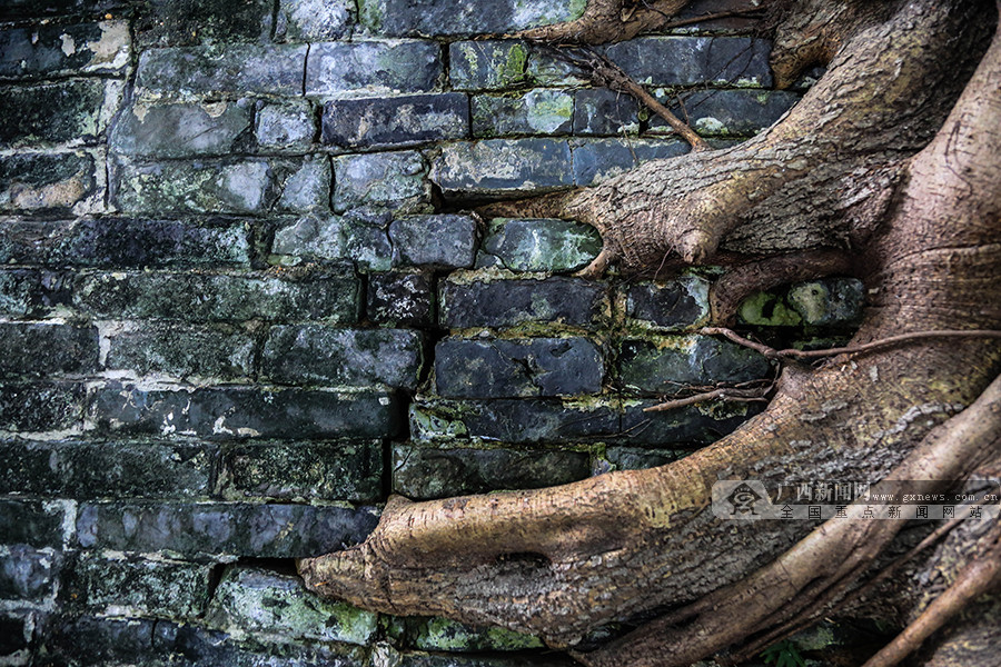一些发达的根系把墙体撑出一道道裂缝,宽度有2-4厘米不等。广西新闻网记者 廖志荣 摄