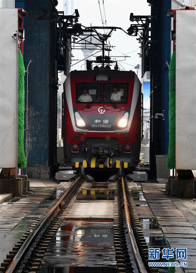 暑运期间,中原地区连续出现高温酷暑天气。炎炎烈日下,中国铁路郑州局集团有限公司郑州机务段客运车间整备场上,“体检医生”们忙碌地对机车进行清洁、上砂、检查、保养、供电试验、故障维修等一系列作业,默默守护着暑运旅客的出行安全。 新华社记者李安摄