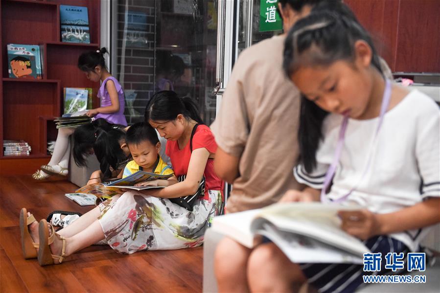 8月2日,读者在岳西县古岳书房夜读。 新华社记者 张端 摄