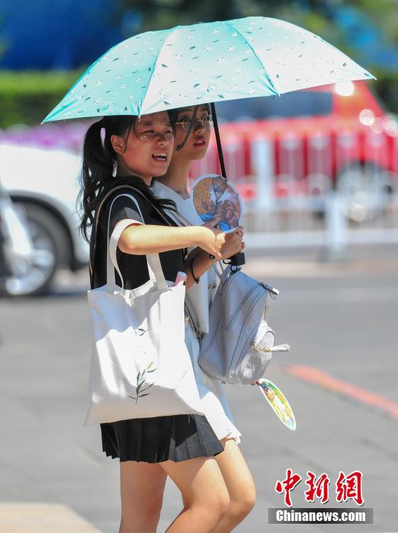 8月2日,市民撑遮阳伞在高温天出行。当日,沈阳最高气温度达37℃,开启“清蒸模式”。中新社记者 于海洋 摄