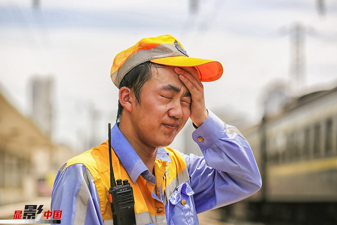 一位上水员每天在股道中往返行走20多公里插60多根水管,一个人平均要为列车上水30吨左右。上水员刘小海作业完毕后,身上的衣服已经被汗水浸透。新华网发(金航 摄)