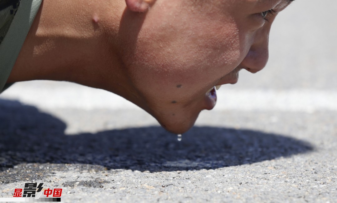 图为沈阳市公安消防支队启工中队官兵在烈日下训练。新华网 姜冰摄
