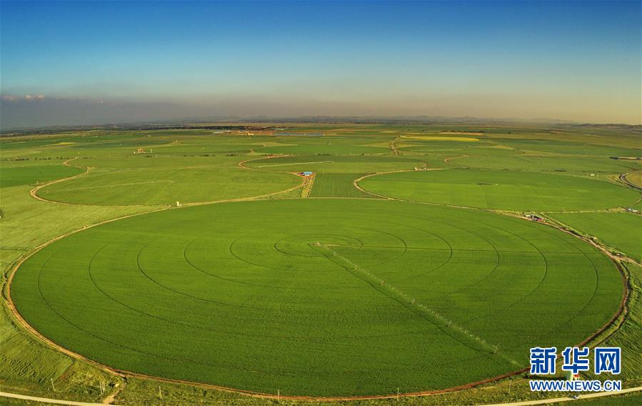 这是塞北管理区使用指针式喷灌设备浇灌的农田(8月2日无人机拍摄)。 近年来,河北省张家口市塞北管理区在全面推进农业现代化进程、节约水资源和环境综合治理过程中,采用指针式喷灌系统和滴灌系统灌溉农田,取得良好的效益。据介绍,目前该区发展高效节水灌溉面积达11.64万亩,年节约地下水24.88万立方米。 新华社记者 杨世尧 摄
