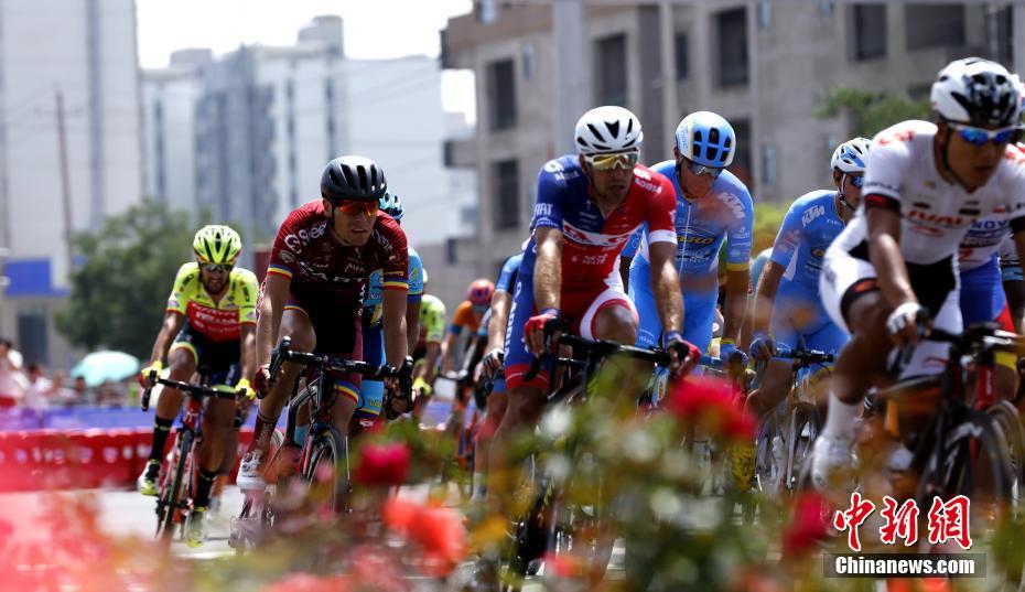 8月4日,“碧桂园杯”2018环青海湖国际公路自行车赛迎来了最后一个赛段兰州新区绕圈赛的比赛。本赛段全长108公里,比赛单圈15.43公里,共绕行7圈,途中共设3个冲刺点。选手竞争异常激烈。最终,用时2小时08分17秒,米奇顿单车交易车队173号格林夫·卡登抢先撞线,获得赛段冠军。备受关注的绿衫,最终由斯洛文尼亚艾德里亚莫贝尔队104号若杰维奇·大山以冲刺总积分110分的领先优势拿下。 中新社记者 马铭言 摄