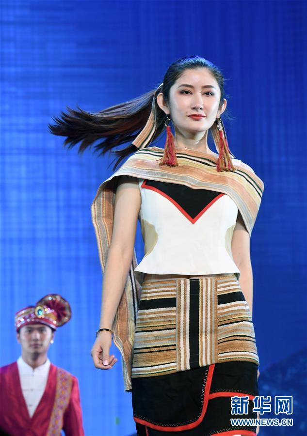 8月4日,模特在赛装文化节颁奖文艺晚会上展示获奖民族服饰。新华社记者杨宗友摄