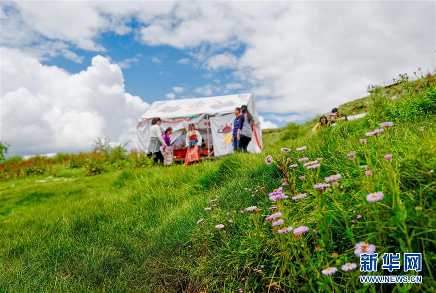 拉萨市民在近郊达东村的一片草坝子上“过林卡”(8月4日摄)。 新华社记者 刘洁 摄