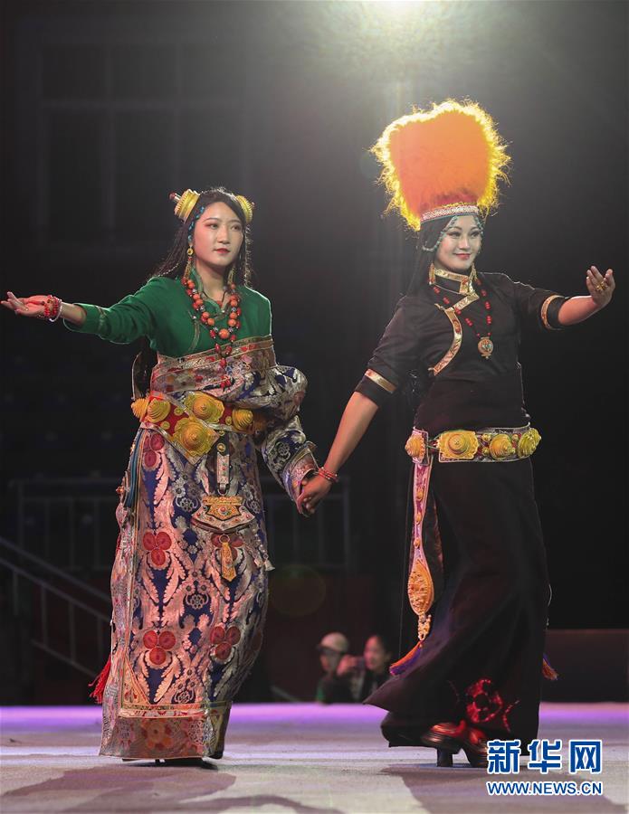 8月4日,模特在展示传统康巴服饰。 8月4日,四川省理塘县在康南运动中心举办康巴传统和新式藏装秀,来自当地的模特展示了多彩的康巴藏式服装,演绎了一场传统与时尚的碰撞。康巴服饰以其夸张的形制、明朗的色彩、古朴的纹饰、厚重的质地等,形成了独具地域文化的鲜明特色。 新华社记者 江宏景 摄