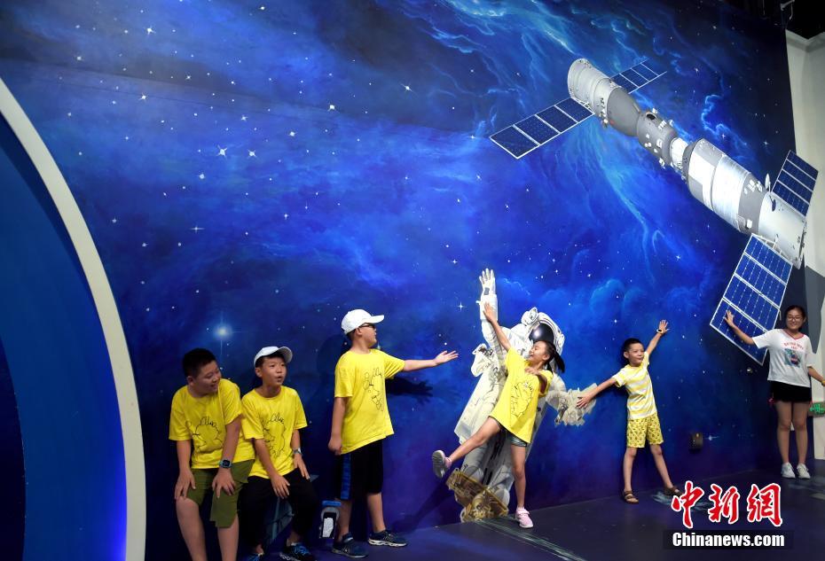 8月5日,中国科学技术馆《挑战与未来》展厅吸引各地学生参观。 中新社记者 张勤 摄