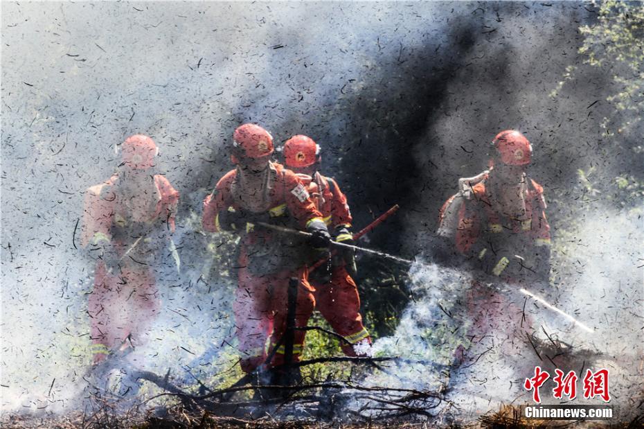 “三伏天”气温不断升高,甘肃武警陇南市森林支队的战士们顶着烈日开展实战型灭火救援演练。此次官兵们在酷暑天气下实战化灭火综合演练,旨在提高复杂条件下扑灭森林火灾的能力。图为清理烟点。 李靠军 摄
