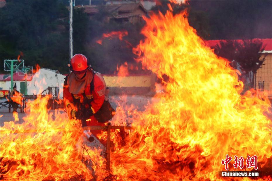 “三伏天”气温不断升高,甘肃武警陇南市森林支队的战士们顶着烈日开展实战型灭火救援演练。此次官兵们在酷暑天气下实战化灭火综合演练,旨在提高复杂条件下扑灭森林火灾的能力。图为扑打模拟火线。 李靠军 摄