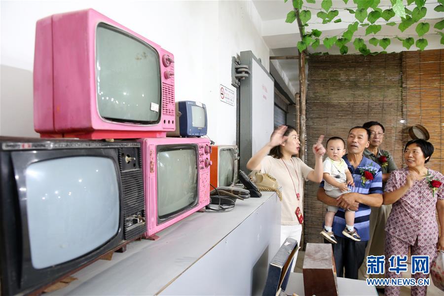 8月7日,参加活动的夫妇在社区工作人员的带领下参观盘香沟民俗博物馆展出的老物件。 新华社发(许丛军 摄)
