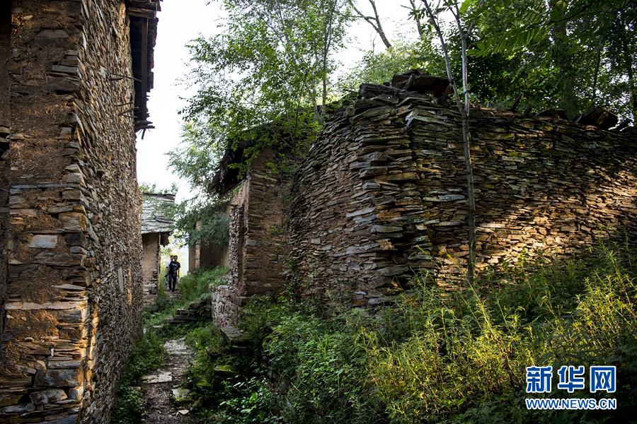 为数不多的游人在石板房之间探访(8月7日摄)。 新华社记者陶明摄