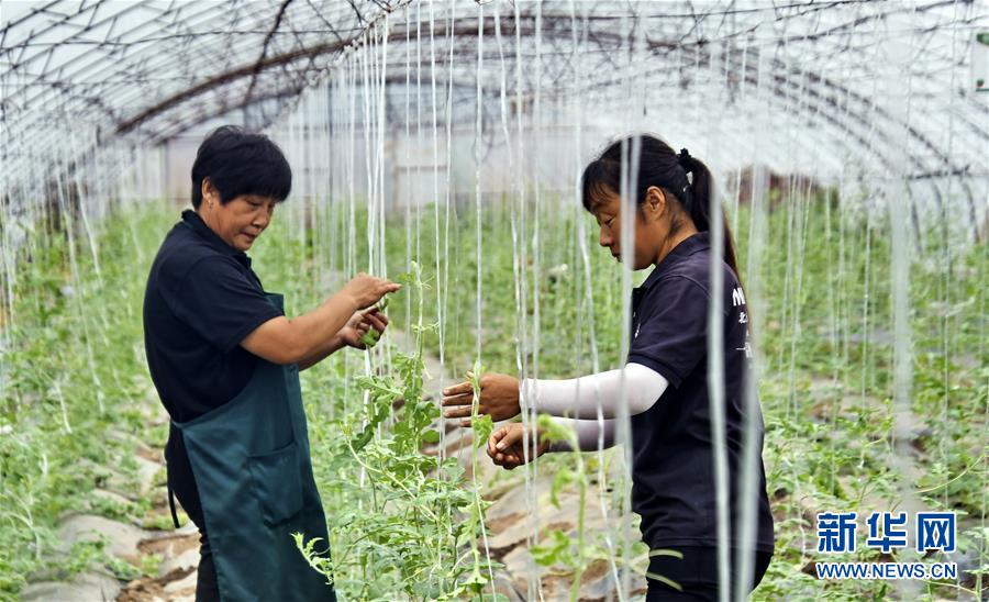 8月8日,北京大兴区庞各庄镇农民进行秋季西甜瓜秧田间管理。 新华社记者 李欣 摄