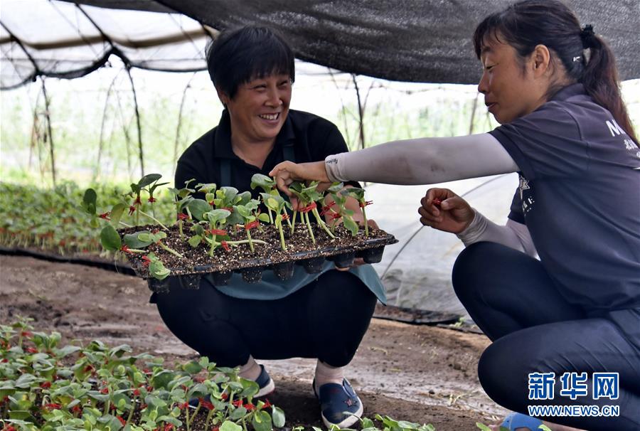 8月8日,北京大兴区庞各庄镇的农民检测育好的秋季西甜瓜秧苗。 新华社记者 李欣 摄