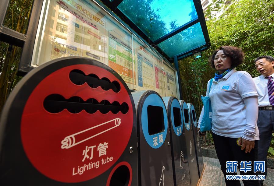8月8日,市民代表在深圳市福田区侨香村小区的垃圾站了解生活垃圾分类情况。侨香村小区是深圳市生活垃圾分类试点小区,居民参与率和投放准确率达到50%以上。 新华社记者毛思倩摄