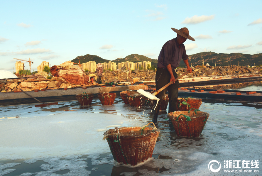 温岭:海边晒盐工 粒粒皆辛苦