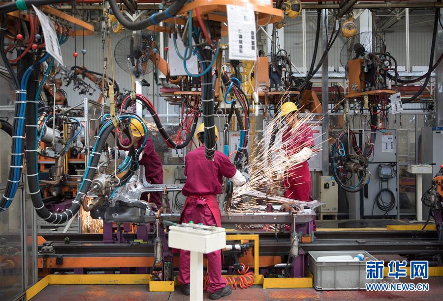 8月7日,在安徽江淮汽车集团股份有限公司安庆分公司新能源汽车生产车间,工人在焊接新能源纯电动车配件。江淮汽车安庆分公司是新建的一家新能源汽车生产厂家,截至2018年7月,整车销售累计已超5万辆。 作为长江经济带中承东启西、承上启下的重要节点,安徽省围绕调结构、优布局、强产业全链条,立足沿江产业基础和比较优势,转型升级,绿色发展。长江流经安徽416公里,素有“八百里皖江”之称。 新华社记者金立旺摄