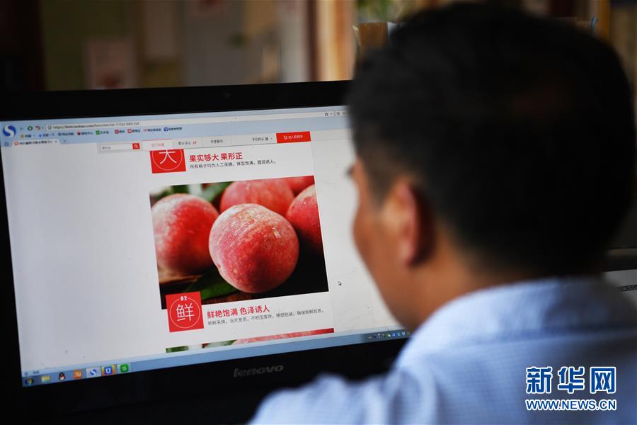 8月9日,申建忠更新自己的脆桃网店内容。 新华社记者王全超摄