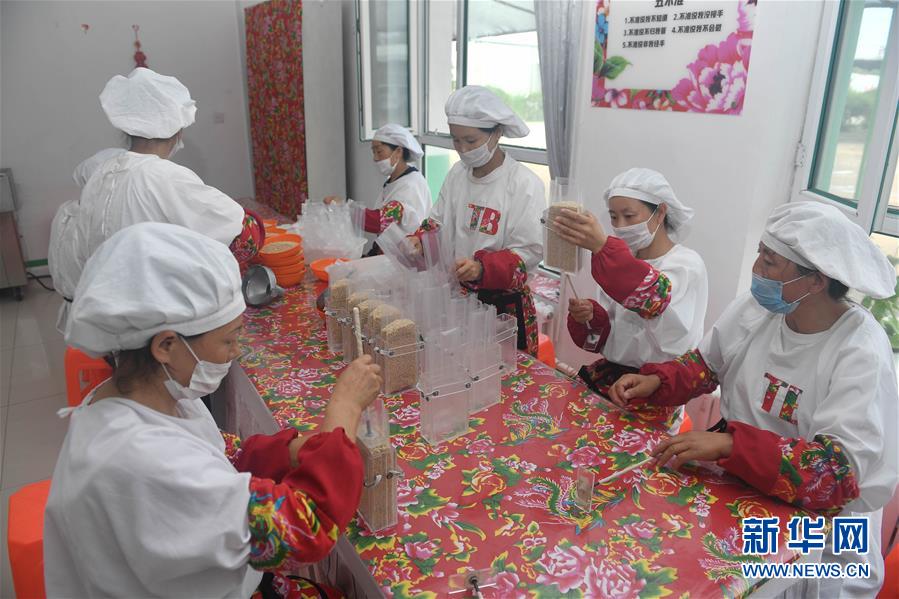 农户在创业园内分拣、封装杂粮杂豆产品(7月18日摄)。 新华社记者 许畅 摄