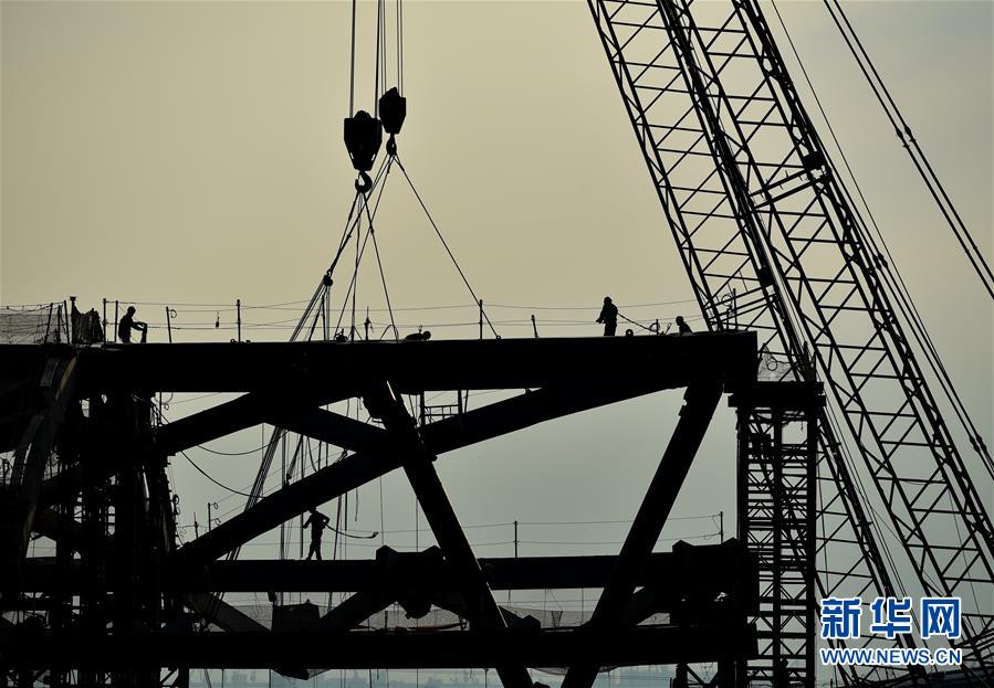 8月9日,工人在深圳国际会展中心项目进行钢结构施工。 新华社记者 毛思倩 摄