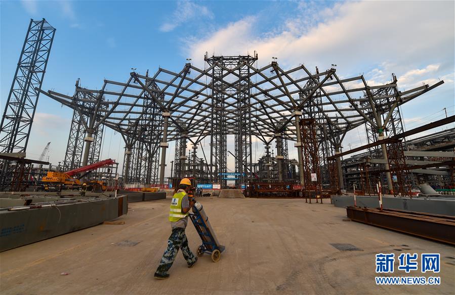深圳国际会展中心钢结构施工现场(8月9日摄)。 新华社记者 毛思倩 摄