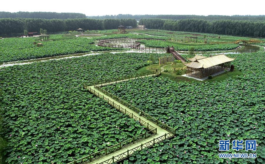 8月9日无人机拍摄的河北香河县刘宋镇庆功台村的万亩荷塘景区。 近年来,河北香河县利用独特的区位优势,不断探索创新“旅游+农业”模式,大力发展以荷花为主题的生态旅游观光业,有效激活特色休闲旅游资源潜力。 新华社记者 王晓 摄